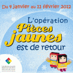 1) Dès le 4 janvier 2012, demander une tirelire Pièces Jaunes à la Poste, 2) remplir la tirelire, chaque petite pièce compte. 3) Avant le 12 février, rapporter sa tirelire à La Poste.