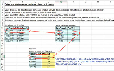 On recherche des données dans une base de données client. La fonction INDEX peut renvoyer une valeur (formule matricielle) ou la référence de la cellule (formule référentielle) à l’intersection d’une ligne et d’une colonne dans une plage de cellules.