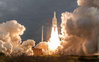• Pour son 5ème lancement de l’année 2018, Ariane 5 a décollé depuis le port spatial européen de Kourou (Guyane française) pour placer la sonde BepiColombo sur son orbite de libération, lui permettant d’échapper au « puits de gravité » de la terre pour commencer son voyage de 7 années vers la planète Mercure via Vénus. C’est la première fois qu’une version ECA du lanceur Ariane V atteint ce type d’orbite, la précédente orbite de libération avait été atteinte par une version A5G+ pour la mission Rosetta en mars 2004.